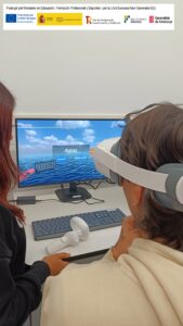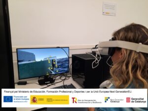 Aquest nou entorn permet a l’alumnat endinsar-se virtualment dins d’una instal·lació aqüícola real, observar-ne el funcionament i dur a terme tasques pròpies del sector: manteniment, extracció de baixes, observació de peixos o prevenció de riscos laborals.