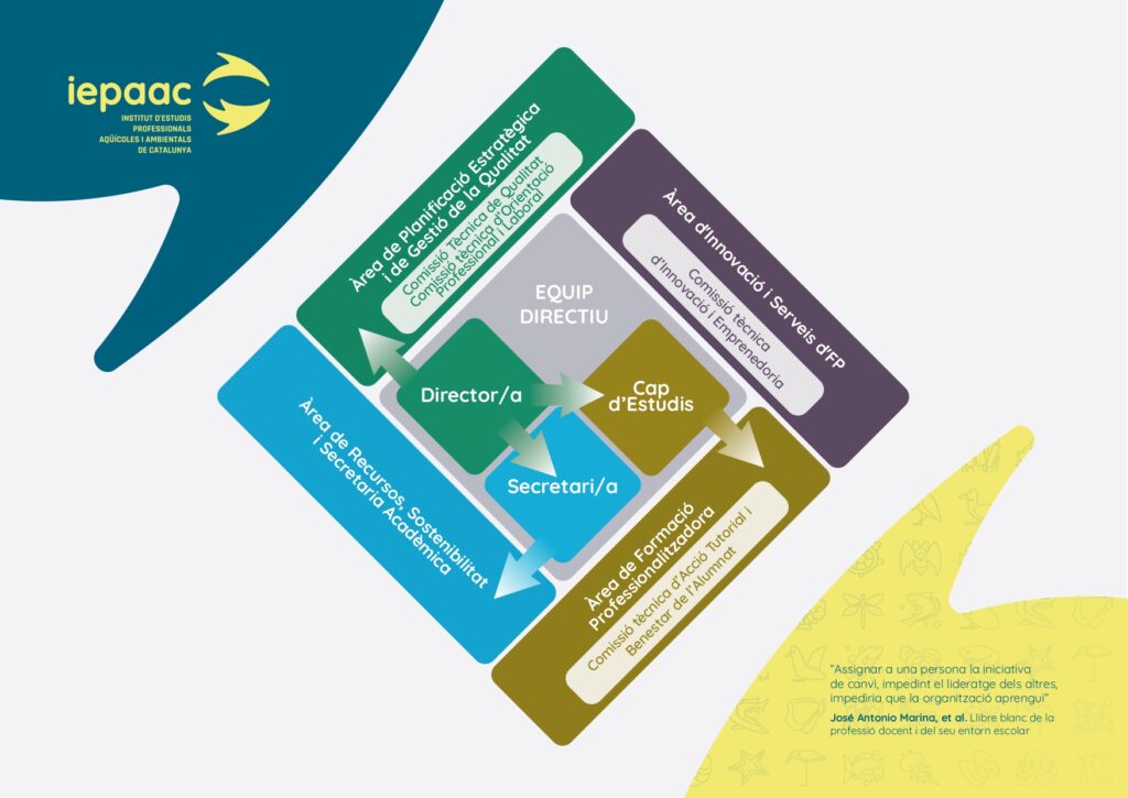 A més, treballarem per ser reconeguts amb excel·lència com a centre integrat d’FP dels sectors aqüícola i ambiental, i esdevenir referència nacional i internacional de l’Economia Blava, Verda i Circular vinculades amb els sectors productius i de recerca i innovació tecnològica.
